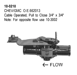 This is the same valve I used (the one that's not working very well right now :-), except in 5/8" X 5/8". Actually I doubt it's just the valve at fault. I've been thinking more about this and I'm certain that this became an issue immediately after I changed to the pink anti-freeze, along with a few other minor issues. The cable that I use to operate this is also not of the highest quality. It is from a manual choke conversion kit ($7, cheap & lightweight).