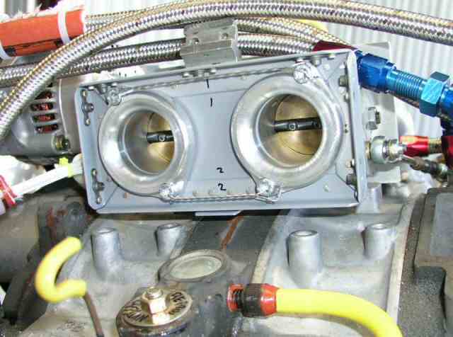 intake, where the TB bolts to the two runners. The yellow hoses are MAP