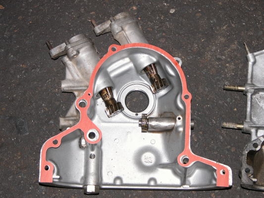 Shows twin dizzy front cover with superimosed REW gasket (black). Otyher pic shows earlier Series IV / V gasket. (orange)