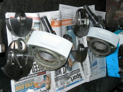 2 sets of single rotor stuff about to be balanced. Rotors are new 9.7:1 and ceramic coated.