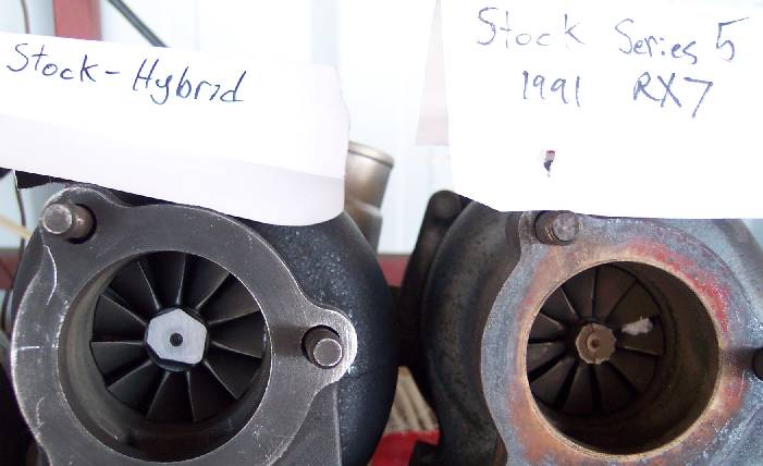 I am about to install my aftermarket stock hybrid turbo. The turbo cost $800 from the RX-7 store. More expensive than other turbos, but considering it will be bolt on it it is worth it. Here are the pictures. Note that the hybrid compressor is even larger than the TO4, and really puts the stock compressor to shame. They also did a good job with porting the wastegate, and the turbine wheel looks way more open than the stock. there is no doubt that I will not be overspeeding this thing, so if it fails heat is the big problem.