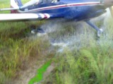 photo show aircraft in shalow ditch with the wheel pant still smoldering.
