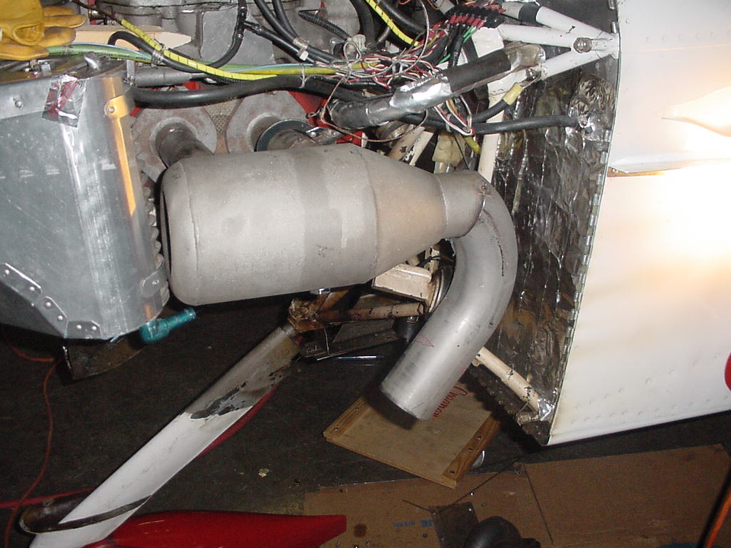 This muffler is best used on an engine with wide front motor mounts and a radiator