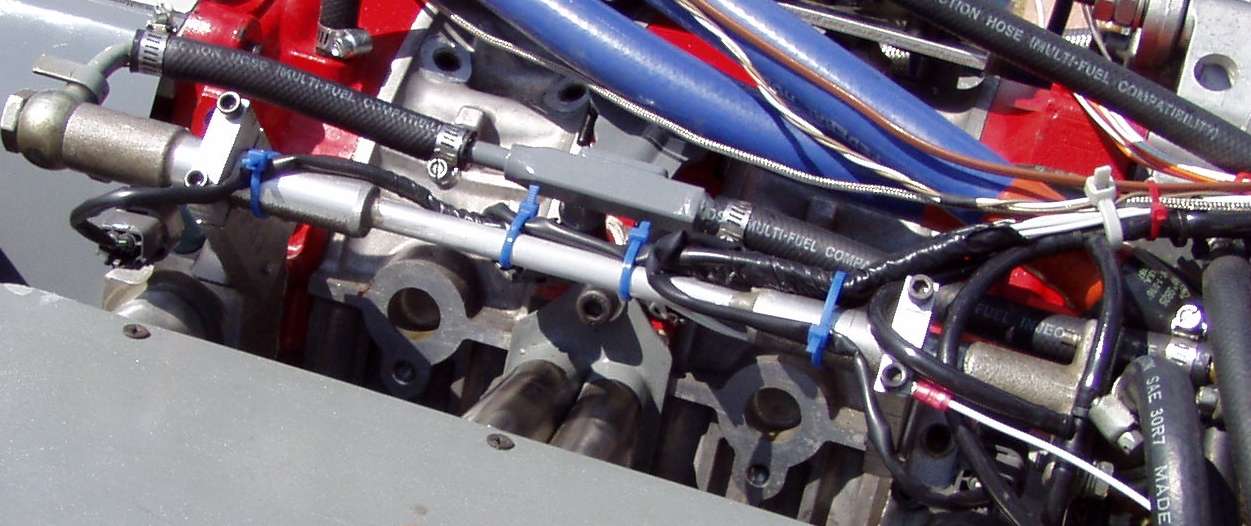 do you have any added photos that show the details of your secondary injector mounting. See attached photo that I took during Oshkosh, What sort of lower end on the injector rail clamps?