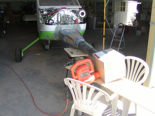 of watter. Putting it directly in the end of the leaf blower was about