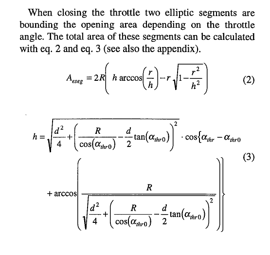 Now if you are willing to assume that the throttle plate  thickness and its rod are not a factor (maybe not a bad real-world assumption just to get the area of the opening - but different story regarding its effect on air flow which is why Al's suggestion is a good one), I have attached a spreadsheet with this simplification of the math.