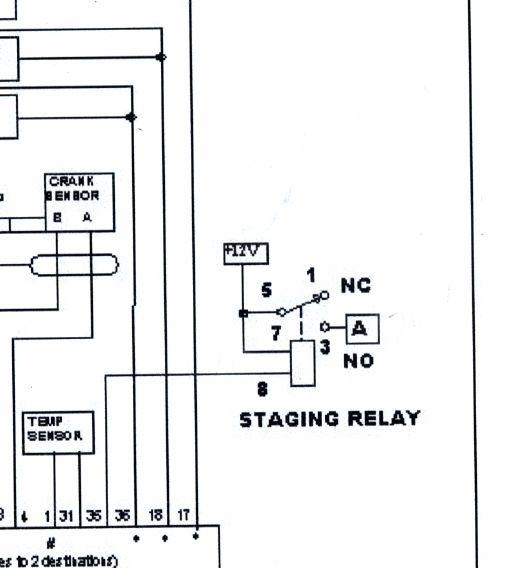I have an EC2-A3 20B, this is not the latest revision that uses the MOSFET staging relay, rather the version that uses the electromagnetic relay. When in injector test mode, I get firing pulses on all injectors. In this EC2 configuration, the staging relay is closed when there is no signal to the relay, so the secondary fire also. If you have the version with the MOSFET SSR relay, I would suspect the signal line to the relay works in the inverse with a corresponding change in the program logic from active low to active high on the staging relay channel. Disconnecting the signal line from the MOSFET SSR (Tracy's drawing, terminal 1, connection A) and running a line from the terminal to ground should close the relay and the secondaries should fire as well as the primaries. Joe