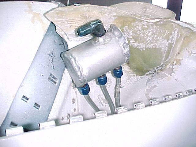 a manifold block where the lines from the sump and the 2 strake tanks join up