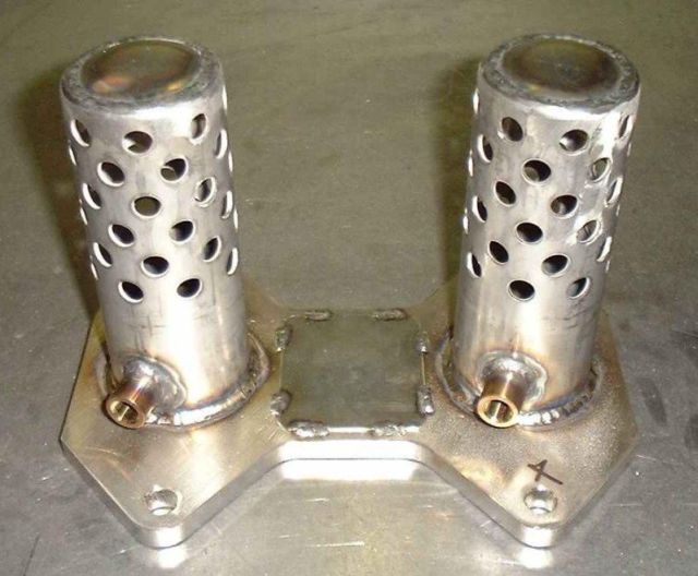 Also a drawing of the Mazda racing muffler. This would have been below the rear bumper, and high heat would not have been a factor. Even so, I saw some failures in the end caps that were only slightly off of flat.