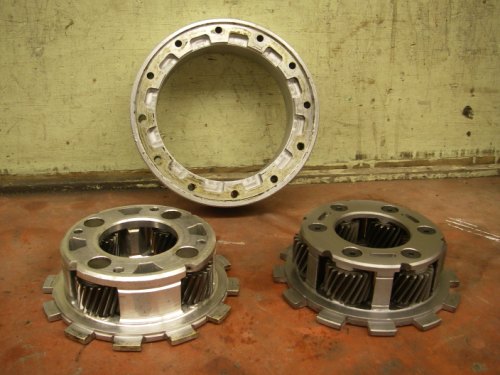 I got to thinking there must be somebody making a 12 lug, 6 pinion planet gear and after much exhaustive searching I finally found one. Actually I found two sources but as neither had pictures in their listings, I phoned first. The first claimed that it simply didn't exist and if it was in their catalogue it was just a mistake. The second didn't seem to know much about it and didn't have one available to look at, but was certain that it would be as described. So I took a chance and ordered it since it was only $92. I received it last week and it is a perfect fit into the RD1 housing and perfectly matches the existing ring & sun gears. I've checked with Tracy on this and he says it sounds good but also added "There are a couple of other details that are different on the B drive (larger thrust bearing on the ring gear bulkhead) and an updated Sun gear from a later model but those are not critical."