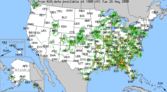 the radar in the SouthEast – notice a few yellow and red areas? Can you