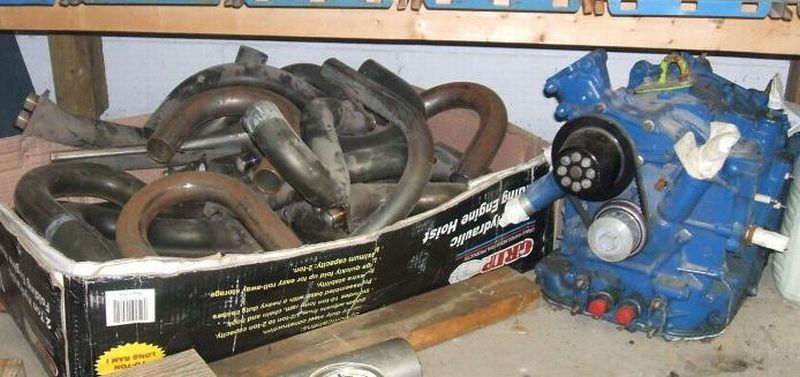 The cracking in racing exhaust systems is due to the paper thin sections used for light weight. In this picture the box contains the redish rust colored mild steel .120" wall bends. The darker colored tubes are Inconel with each bend made of two stamped halves welded together. So the walls around the bends stay the same thickness as straight sections. They are sold for $15.00 per box, used. The complete header set with collector and waste gate exhaust is discarded after 3 heat cycles. They are fun to look at, but only good for cutting up into shielding or the like. It is easy to weld (TIG) with stainless filler rod.