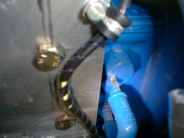 Hi, fellow rotary enthusiasts.....I finally got my EFI system wired up, and I am now attempting to hook up the last few items so I can start this thing up, make noise and scare the neighbors.  I took a few photos, and labeled the items in question....I don't know what these sensors and connections are or should be.  Any help would be much appreciated. It is a 1989 turbo model engine, if that helps.  I will send this message in two parts, so download times won't be so bad. Items one and two are just underneath the oil cooler. Item #1 is a small threaded sensor with two wires coming out of it.  Item #2 is Larger, and has two connectors at the end.