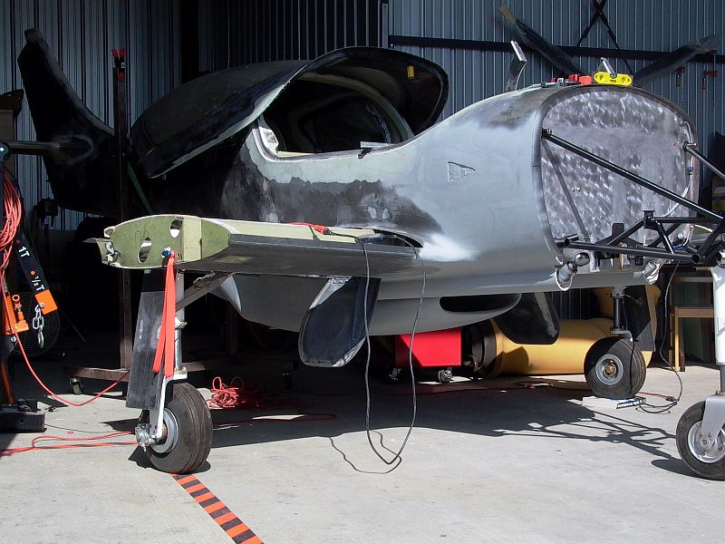 Finally in the new hanger.  Finishing hydraulics.  Waiting (patiently) for the engine.  Scoop, radiator, oil cooler in place and pressure tested.