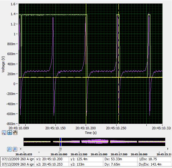 I have attached a couple of images of CAS and ignition control signal traces from my systems. The violet trace is the CAS signal and the yellow trace is the coil control signal. I have voltage dividers on the inputs so the top of the control trace is actually 5 V, not 1.4 V as shown on the scale.