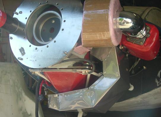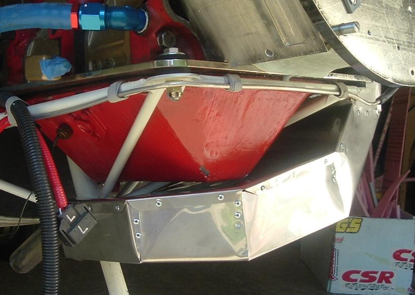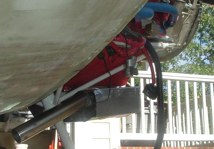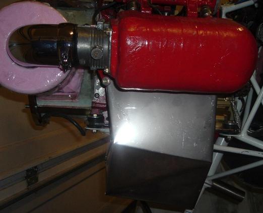 The cardboard/pink foam construct just above the muffler is the nascent form for the intake air filter box.