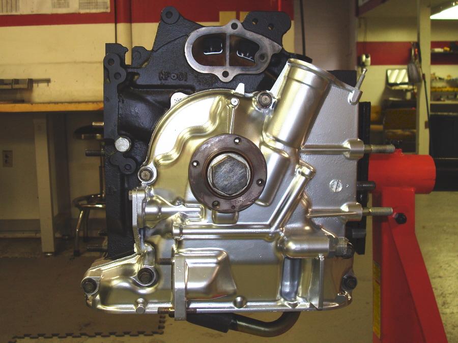 waterpump hsg built into it................Next you bandsaw the waterpump hsg from the rest of the cover and
