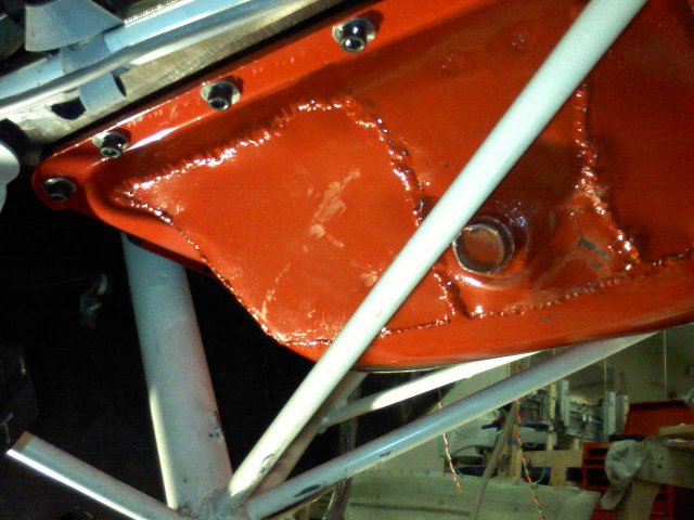 Sometimes a guy can't win due to nothing more than a long habit of losing.  1/4" more forward and this would have fit perfectly.  The oil drain plug hits square in the middle of the mount support tube.  The engine needs to slide back another 1/8" to fit the mount.  As it is, I have no choice but for the oil pan has to come back off for another welding session.