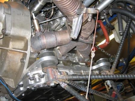 The photo shows a turbo manifold constructed from schedule 40 304SS pipe and weld els. At the time of the photo, a butterfly valve was installed in place of a turbo to investigate the effect of exhaust back pressure on the Renesis for comparison to a 13B.