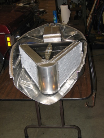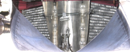As possible point of interest, a more recent test flight with a V shaped radiator with two 7x16.5x2.25" cores in the scoop was made. In the cruise condition with a 114 degree F air temperature rise through the scoop radiator, the aircraft TAS was 143 knots and the scoop outlet air velocity was measured to be 157 knots TAS. Steve Boese
