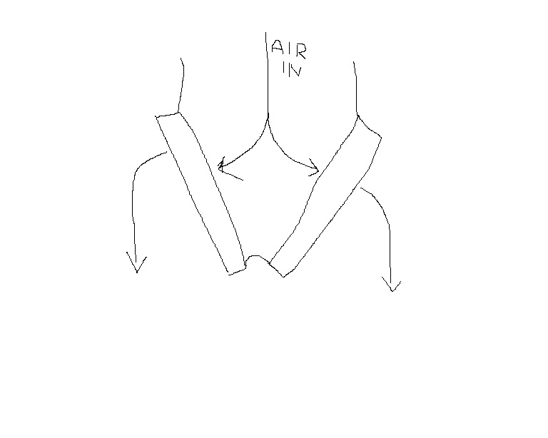 Does anyone care to comment on how they might work as primary radiators for the water jacket if placed in a Vee formation? Open at the front and narrowed together at the back as per diagram attached. I think in most installations this is a more efficient air flow path.
