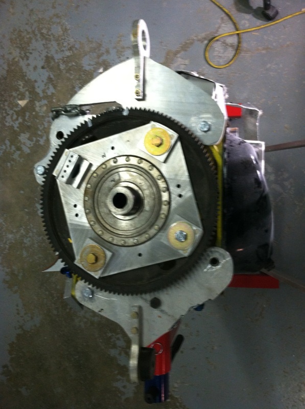 I have attached pics for the installation of the 2 RX 8 sensors on the plate of the RD=1C. They are placed 180 degrees apart. I am using one of the 4 locations where the damper is bolted to the flexplate. I made a C channel bracket that captures the head of the bolt that secures the damper. A chunk of aluminum straddles the head of the bolt and fits into the C channel. It is tapped for 10-32 bolt that is the trigger and can be moved to change timing. The sensors can be moved in and out to get the right clearance. I would like to put a scope on the sensors to see if any of the other 3 bolt heads affect the signal. This is a mockup engine and has no rotors. I would like to remove the front and rear stationary gears and lubricate the bearings and re install the stationary gears and using the starter spin the assembly over to monitor the sensor with a scope. The signals will be fed to a Chrysler ignition module and I want to ensure that they trigger properly. I will have to send picsin multiple emails Joe Berki 13b P Port Limo EZ