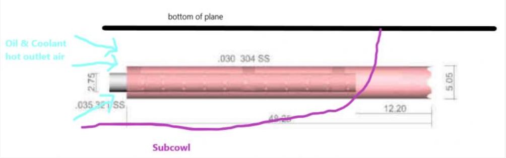 I'm thinking I exit the exhaust (2.5" pipe) inside the sub-cowl and have a 5" wrapped around it which ends out the sub-cowl for x length. This should help create a vacuum and pump out the main cowl air.