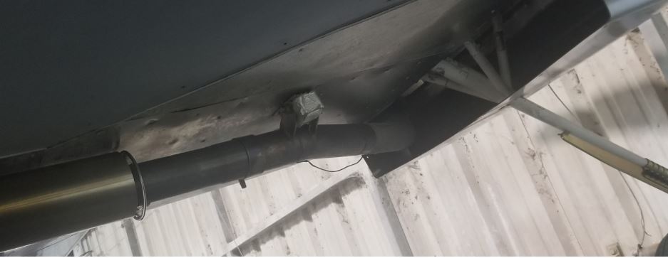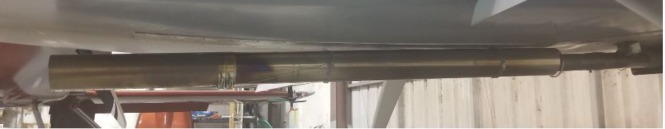 I have 2.5" exhaust leaving the cowl. (ex1.jpg) It comes down and centers the bottom of the plane into a 4" outer pipe. (ex2.jpg) The 4" outer pipe (5ft long) is open to the free air and exits behind the rear bulkhead. The 2.5" converts to a 3ft long perforated pipe (ex3.jpg) and exits inside the 4" outer pipe. For fun, I filled it full of ceramic fiber insulation mat, which did help a little until it blew all out.