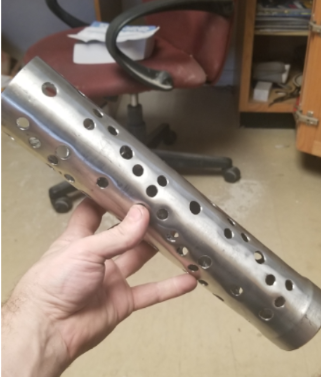 Have started on the exhaust. Made all three primaries 2" double slip joints (that alone took almost a whole day with welder). The big can (CA - Centrifugal Accumulator) rolled into a 5" can and we'll secure it to the engine with straps. The inside pipe is 2.75" which has an area of 5.94sq". I'm not sure if there's a magic number, but all the holes I drilled equaled to just under double the area (11sq"). Most are 3/8, but I did add some 1/2 to get the total area up. Could we get away with drilling less holes? Not sure. I'll be able to drill out one side end of the CA and pull out the inner tube and change out. Will experiment later with less holes and monitor back pressure. Will weld a npt bung on the CA and use the wideband bung to measure the different. The previous exhaust with just an Aero Turbine 2525XL, measured ~113dBA. With nothing, was closer to 120dBA. Funny around 2000 prop rpm was louder then at 2300 full static.