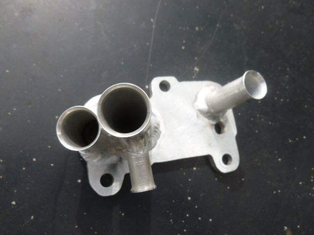 for 5/8" fitting for hose to right rad. Small hole is for 1/8 NPT