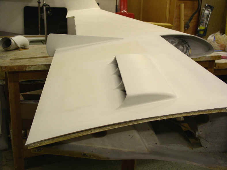 The first pic show the oil cooler.  The second is the inlet “scoop”  - not really a scoop, just an airfoil lip that extends down into the air flow about 1/2”.  The third pic shows the rough ducting (early version of exit fairing) for the coolant rad; the oil cooler is similar, and the fourth pic shows the exit fairing. The flow through this cooler (and the wing root rad) is enhanced by the normal pressure difference between the bottom and top of the wing.  At this position of the wing the difference should be higher at higher angle of attack.