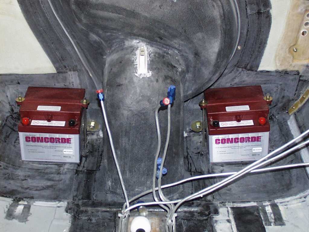 My rudder peddles are as far forward as the firewall pocket will allow. The Batteries are Concorde RG-24-15M. About 6" deep and 7" high and wide. Because of the pocket, the batteries slide in and out under the rudder peddle that lifts out of the way. May not be able to use a box. Pictures are included.