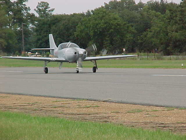 Legacy first flight was Friday, 9/5. VERY exciting. Back two cylinders showed above red-line heat, so flight only lasted about 8 minutes. Problem was bad calibration of the sensors. Now fixed. The plane handled very well and very responsively. Ran like a scalded ape. Due to the short duration of the flight and the distraction of the apparent problem there are undoubtedly issues not yet noticed, but so far so good. Since the apparent but not real heat problems precluded climb to safe altitude no exploration was done as to slow speed handling, and speed was kept higher than normal for landing. Runway is 3000'. Brakes work well. Attached picture is the take-off roll. W [Congrats on that first flight. Please let us know how she performs once you've got the adrenaline down far enough to take note. Blue skies for you.....