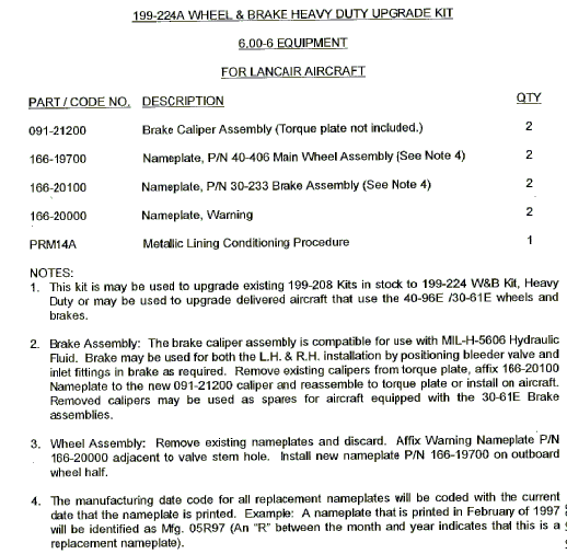I recieved a reply from Ralph Hartlaub at Cleveland Wheel & Brakes. I met Ralph at the Lancair tent at Oshkosh. Hope you all can use the information.