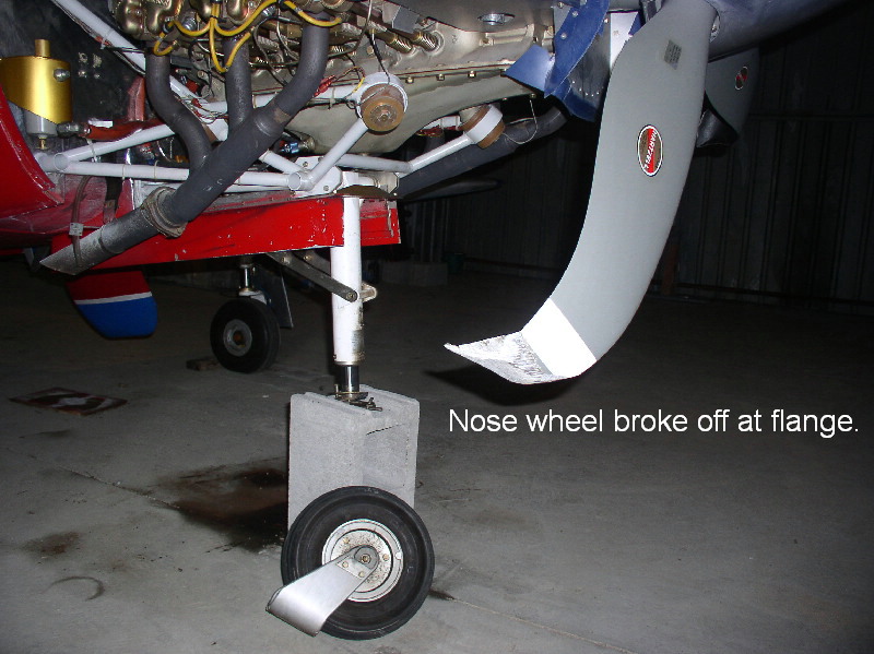 base leg and landed very fast and very hard. The nose wheel sheared off