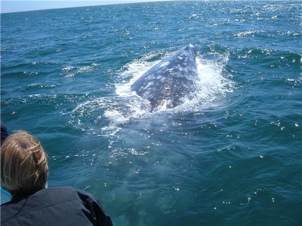 boat ride to the mouth of the lagoon, we spot whales. The whales are completely