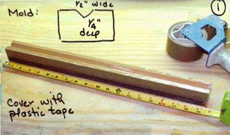 Cut a wooden mold with 1/2 inch wide, 1/4 inch deep triangular section 18 inches long.