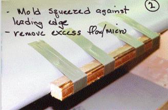 Squeeze the mold against the leading edge, centering it as closely as possible, attach to wing with duct tape as shown.