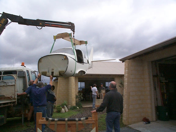 hangar until this weekend. On Saturday, the fuselage moved to the shop at