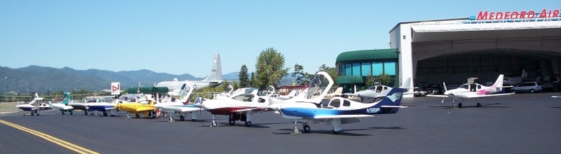 A big thank you to Gary Edwards and all his support crew for organizing the first Medford Lancair gathering. I think we had 15 planes on the ramp. It was nice to see such a great turn-out. The weather was just perfect. Sign me up for next year, Gary :-)
