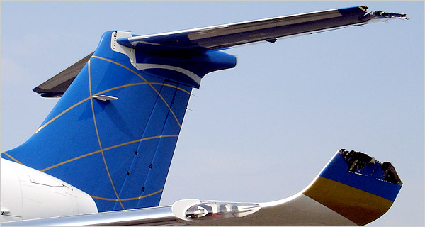 The wing and tail of the Embraer Legacy 600 were damaged in what seems to have been a collision with a Boeing 737 in Brazil on Friday.
