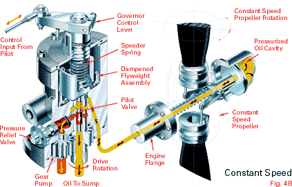 the engine losses oil pressure) on take-off the prop will go to high pitch -