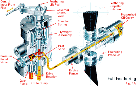 (oil is used to move from high pitch (feather) to low pitch) - which is