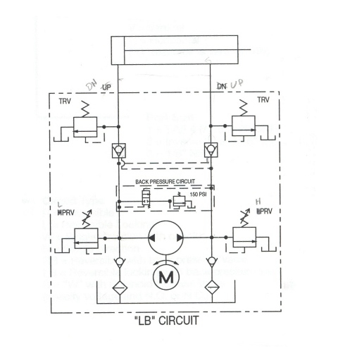 When this problem first surfaced several years ago, we determined that the build instructions for the pump were in error. I would not trust a reference by serial number because of this. Instead use the functional schematic from the Oildyne website applied to our application. To add to the confusion, note that the labels in the schematic for up and down need to be reversed. The more typical application does work during extension of the cylinder. Our application reverses the high and low pressure sides because our work stroke is during cylinder retraction.