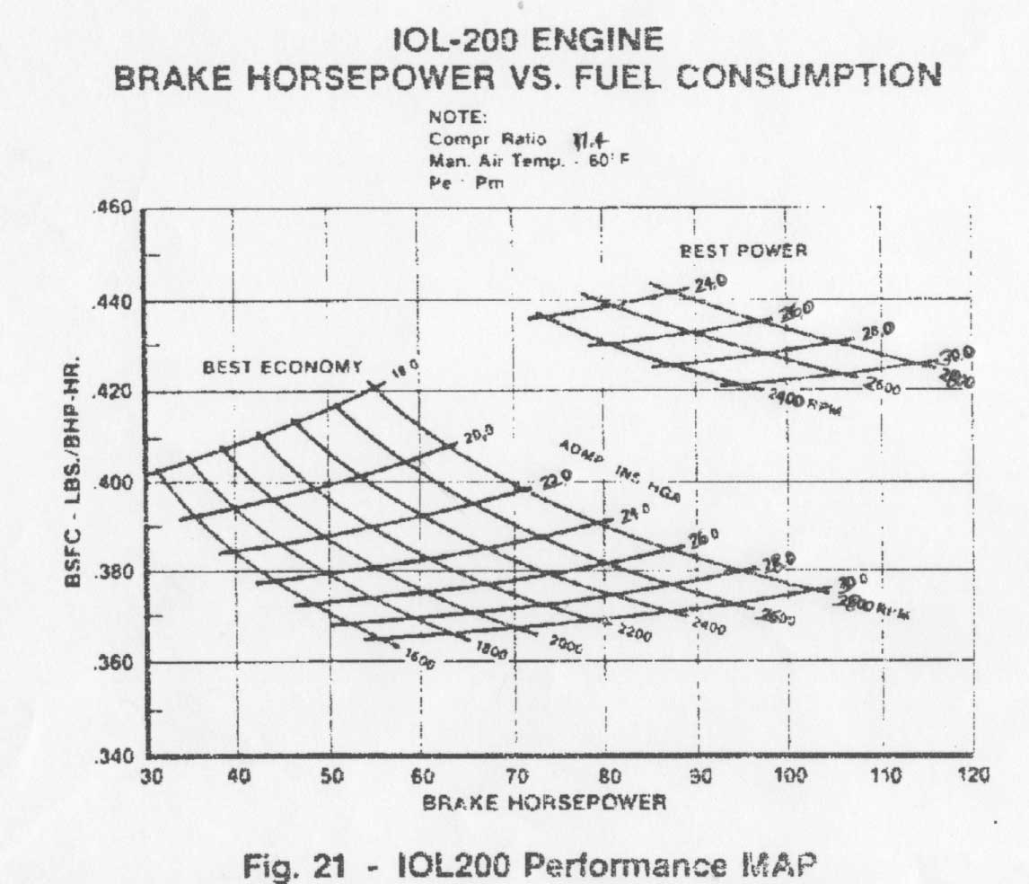 found a chart of the brake specific fuel consumption (BSFC) for the liquid-cooled