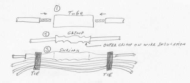 wire and crimp. Shrink tubing over the entire thing helps, but frequently shrink tubing that fits over the