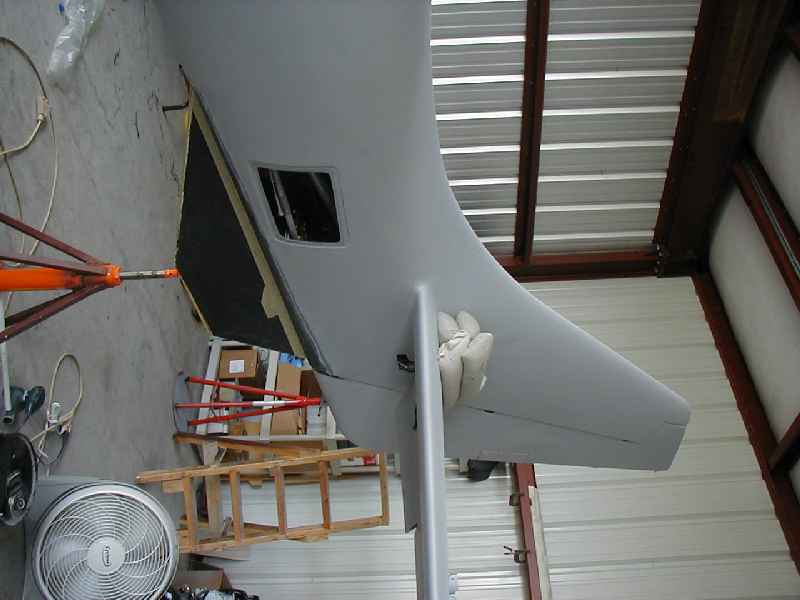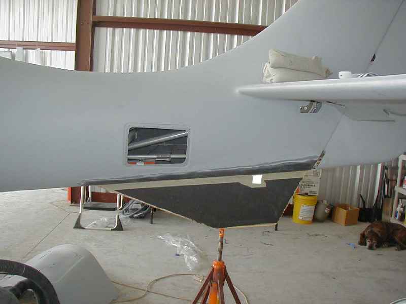 [We added a single ventral fin to Ted Noel's IVP... moved the tie down receptacle into the upper edge of the fin. Attached photos show the submerged fitting and its location inside the fin. The blue foam in photo 17 was used to protect the threaded area during the layup process... the fitting was made from a block of 3/8" thick steel (to match the 3/8" foam core in the fin) welded to a threaded rod that matched the threads in the original tie-down receptacle. The original tie-down eye simply threads into that fitting from the side. <Marv>