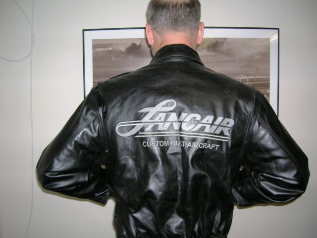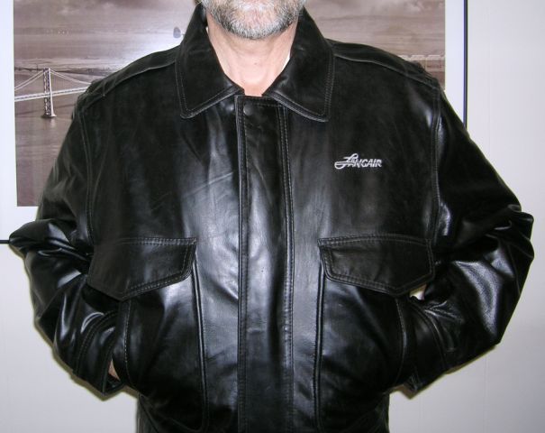 Lancairians can get a jump start on holiday shopping by ordering Lancair's new logo'd leather jackets. The jackets are similar to the Perrone Professional Flight Jacket in gloss black goatskin - see: <http://perroneapparel.com/store/proavboards.htm> but with "Lancair" on the left chest and "Lancair - Custom Built Aircraft" across the back. There are double-entry pockets on the front outside and leather trimmed pockets inside. Cuffs are snap leather and the waistband is elastic gathered leather. The jacket is quilt insulated. Stock is limited and they will probably sell out at Oshkosh, but you might be able to order one with delivery in time for those winter pre-dawn flights, or just looking cool ;-) . Photos attached. (Please ignore the greybeard model - John Travolta was unavailable). Contact Kimbra for details. Robert M. Simon ES-P N301ES