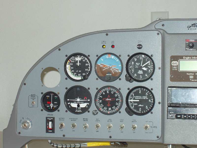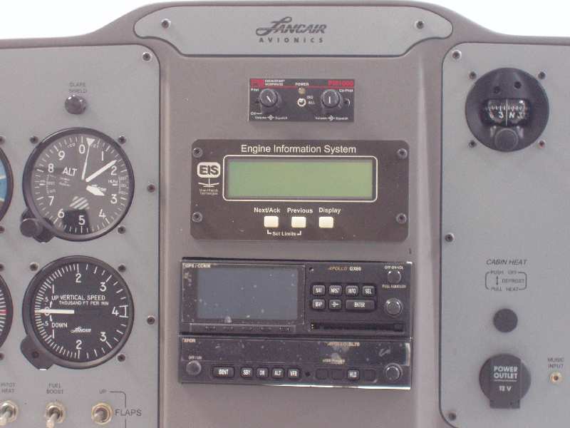 11922 Ps Engineering PM1000II 4-Place panel mount with Pilot isolate (jack kit included) 430-6090-100 Garmin SL70 Transponder mode C 430-6050-605 Garmin GX60 Nav MD40-66 Mid-Continent Course Deviation Indicator T/F basic CDI SSD TRANSCAL Mode C Encoder AUTOPILOT DIGIFLIGHT II TRUTRAK Digital Autopilot Programmer Only 2 basic servo system, track selector, GPS Nav Mode,Alt Hold FLIGHT INST. 5934PD3-A615 UNITED INSTRUMENTS Altimeter 20K (un-lit) 7040-C181 UNITED INSTRUMENTS Vertical Speed Indicator (un-lit) 1394T100-7Z MID-CONTINENT Turn Coordinator (un-lit) 3 1/8 8130-B756 UNITED INSTRUMENTS True Airspeed Indicator 260K (Unlit) (320/360) 3 1/8 23-501-06-16 SIGMA-TEK Attitude Gyro (unlit) (5000B-36) Vacuum 4000B-?? SIGMA-TEK Directional Gyro non lit (vacuum) PG2C-12 SIRS Panel Mount Compass 14V ENGINE INST. E4000 EIS Model 4000 instrument only (customer to purchase probes and sensors separately) VP15-01 Grandrapids Vaccuum/Pressure 15 PSI sensor ACCESSORIES AK450 AMERI-KING ELT, FAA TSO C91a, EMERGENCY LOCATER TRANSMITTER(not included but cut out to accomodate) W31-X2M1G-???5,10,15,20,35,40,50 CIRCUIT BREAKER/ TOGGLE SWITCH Potter & Brunfield 5,10,15,20,25,30,35,40,50 amp MJTV-3 Switch, Door Seal Pneumatic Control MS35059-27 LANCAIR Flaps Switch, Heavy Duty Toggle MS35058-21 Heavy Duty Toggle Switch SPDT on off on 901-NAP1612 & 901-NAP7683 Aux Ports non Lighted Bezel and Plug non Lit 782-3212 LANCAIR 10-Circuit Fuse Block fuses included RP2 RAY ALLEN Indicator Needle Indicator only A-510-2 Key Switch acs 19051253 LANCAIR Red LED 14v INCIDENTALS LASER LANCAIR Laser Cut Aluminum POWDER LANCAIR Powder-Coat Aluminum PAINT/ MATERIAL/BODYWORK Paint and Body Work of Fiberglass Panel and Legacy Pedestal SILKSCREEN LABEL LANCAIR Custom Silkscreen Labeling This is a prewired panel for a Legacy FG. The Attitude Gyro and Directional gyro probably need to be overhauled (it's been sitting a long time). Everything else seems to work fine. This was the Legacy show panel we used for Osh Kosh and Sun-N-Fun but now it is being replaced with a G900X. The autopilot is wired into this panel and hole is cut but the actual guage is not included. The GPS antenna is mounted behind the panel for show and tell mainly. It should be relocated outside the aircraft. If someone out there is in need of a simple but functional panel this is the one for you. I'll let this guy go for $18,500.00 which is extremely low for a panel this well built. Jeremy M. Roach Avionics Technical Advisor/ Trainer Lancair Avionics 2244 Airport Way Redmond Oregon 97756 Tel. (541) 923-2244 Fax. (541) 923-2255 E-mail: jeremyr@lancairavionics.com <blocked::mailto:jeremyr@lancairavionics.com>