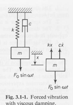 Here we have a base anchor point (top), a spring and a mass with a damper in parallel with the spring.  The weight wiggles up and down, and in this example the excitation force is applied to the weight.  The spring can be a torsion spring and the weight can rotate back and forth, but the behaviour is essentially the same.